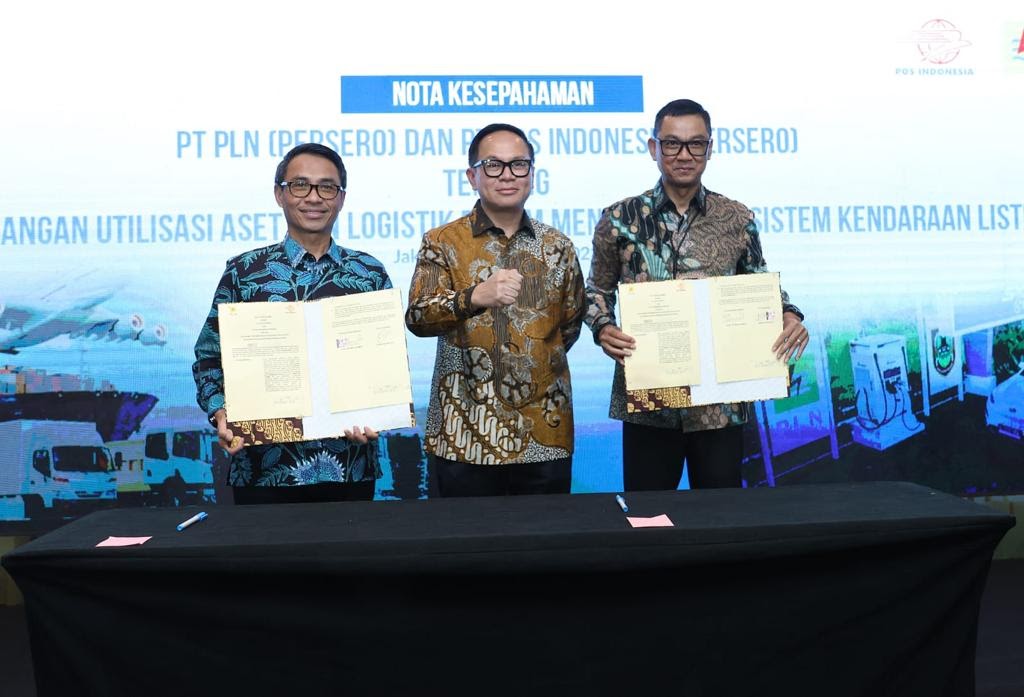 energikita.id – PT PLN (Persero) menjajaki kerja sama dengan PT Pos Indonesia (Persero) dalam pengembangan utilisasi aset dan logistik dalam mendukung ekosistem kendaraan listrik. Sinergi antar Badan Usaha Milik Negara (BUMN) ini ditandai dengan penandatanganan nota kesepahaman (MoU) antar kedua belah pihak di sela acara Focus Group Discussion ’Percepatan Peningkatan Sinergi dan Integrasi Logistik Ekosistem BUMN’ di Hotel Ritz-Carlton Jakarta, Selasa (10/10).