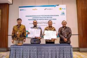 energikita.id – PT PLN (Persero) dan PT Pertamina EP Zona 14 secara resmi telah menandatangani Perjanjian Kerjasama (PKS) Layanan Fasilitas Ekstra untuk Pertamina EP Papua Field Klamono. Penandatanganan ini dilakukan di hadapan Kepala SKK Migas Papua Maluku dan berlangsung di Mason Pine, Kota Baru Parahyangan pada Jumat, (6/10).