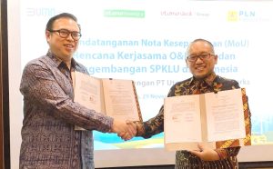 energikita.id – Direktur Utama PLN, Darmawan Prasodjo mengatakan bahwa kolaborasi dalam transisi energi adalah kunci penting untuk keseimbangan trilema energi, yakni security, affordability, dan sustainability. Untuk itu, sebagai bagian dari anak Perusahaan PLN, pada Rabu (29/11) Haleyora Power menandatangani Nota Kesepahaman (MoU) kerjasama inklusif dengan PT Utomodeck Metal Works untuk operation & maintenance Pembangkit Listrik Tenaga Surya (PLTS) dan pengembangan Stasiun Pengisian Kendaraan Listrik Umum (SPKLU).