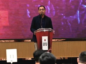 Mewakili Direktur Utama PLN Darmawan Prasodjo, Vice President Pengelolaan Pemasaran PLN Daniel Lestanto saat menyampaikan kesiapan PLN dalam mendukung ekosistem kendaraan listrik di Indonesia pada acara Press Conference IIMS 2024 di Hotel St. Regis (6/2). FOTO DOK PLN