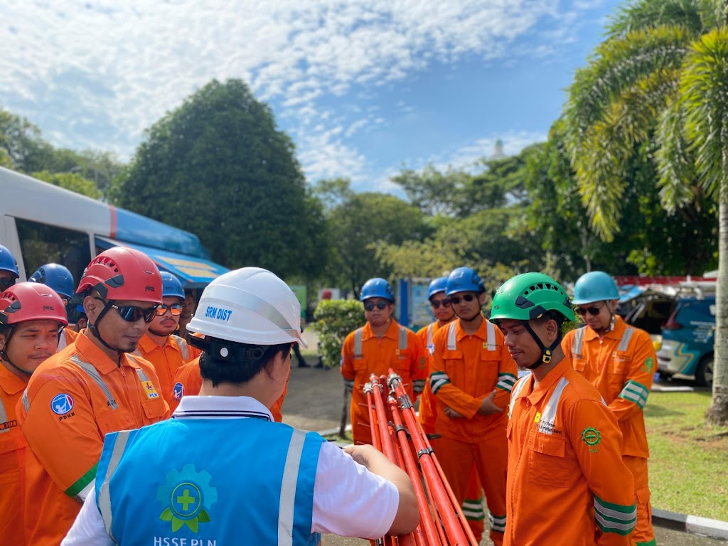| Senior Manager Distribusi PLN UID Kalbar, Sumarsono (tengah) memberikan arahan untuk selalu mengutamakan keselamatan kerja dan selalu siaga dalam menjaga keandalan listrik. FOTODOKPLN |