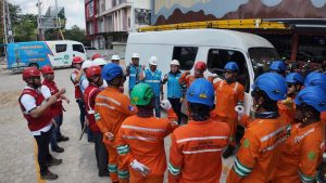 | General Manager PLN UID Kalimantan Barat, Joice Lanny Wantania memimpin yel-yel penyemangat kepada Tim PDKB sebelum melakukan pekerjaan di lapangan (25/07). FOTODOKPLN |