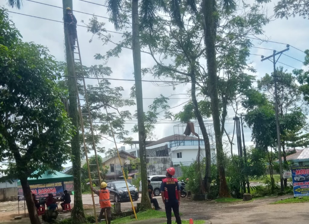Petugas PLN sedang melakukan pemangkasan pohon di salah satu titik yang berpotensi terjadi gangguan listrik di Kota Pontianak. FOTODOKPLN