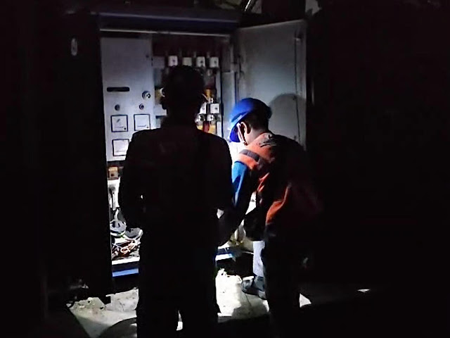 | Petugas PLN memastikan jaringan distribusi aman untuk pemulihan masuknya tegangan listrik. (FOTO/DOK/PLN) |