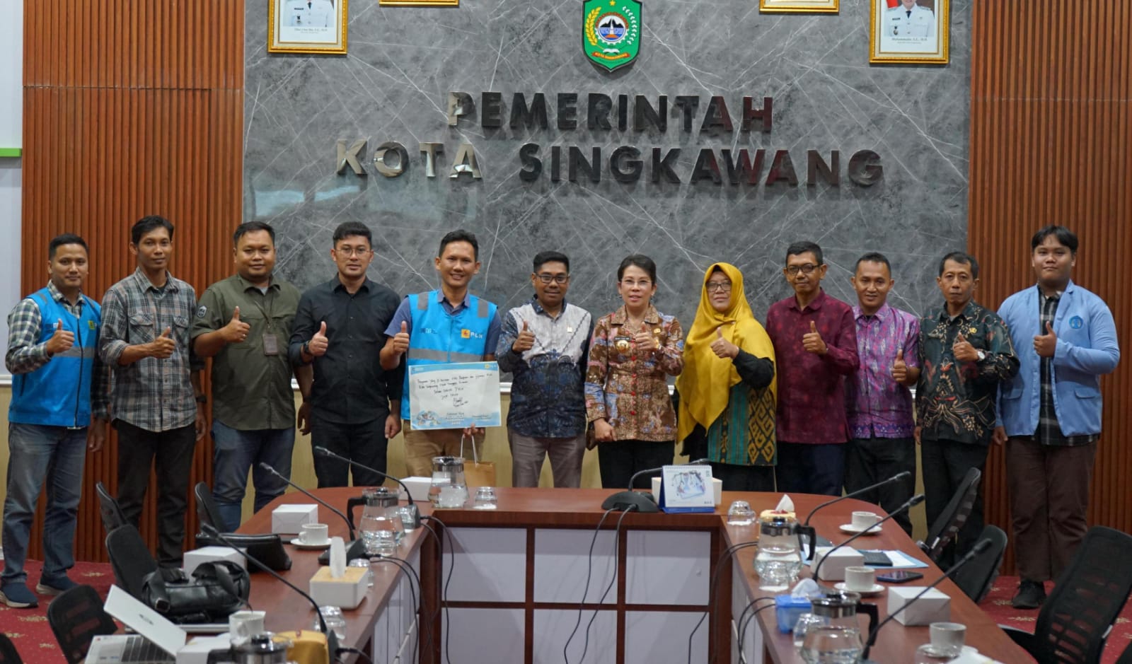 | Foto bersama di Hari Pelanggan Nasional 2025, saat PLN UP3 Singkawang berkunjung ke Kantor Walikota Singkawang. Kunjungan ini menjadi wujud komitmen PLN dalam menjalin sinergi, meningkatkan layanan, serta menghadirkan energi terbaik bagi masyarakat.(FOTO/DOK/PLN) |